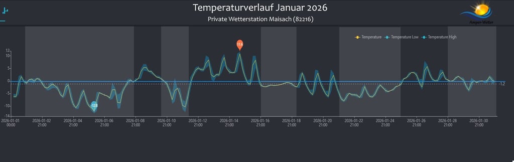 Der wärmste gemessene Wert war am 15.01.2026 mit +11,6 °C.
