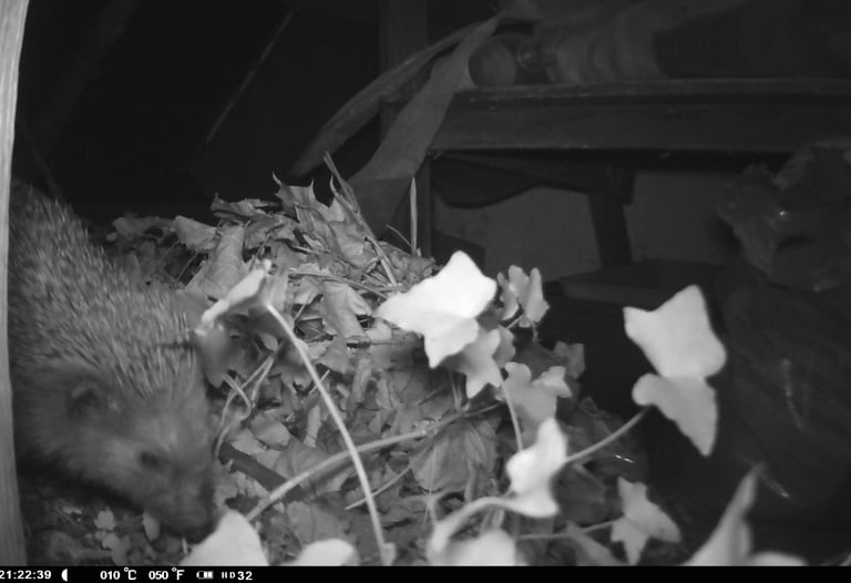 Das beigefügte Foto stammt aus dem Garten des Nachbarn. Es zeigt einen Igel, der aus seinem Winterschlaf erwacht ist. Dieser Laubhaufen wurde speziell als Unterschlupf für Igel angelegt. Die Aufnahme wurde mit einer Wildkamera gemacht. Schon putzig oder?