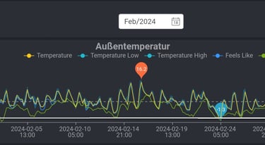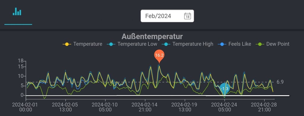 Der wärmste gemessene Wert: +16,2 °C am 16.02.2024.