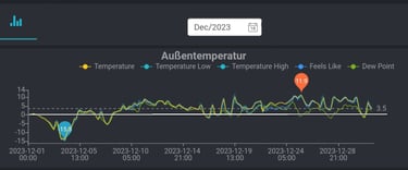 Temperaturverlauf Dezember 2023 (Private Wetterstation Maisach