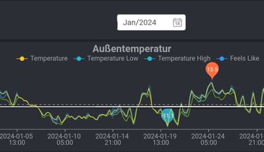 Temperaturverlauf Januar 2024 (Private Wetterstation Maisach