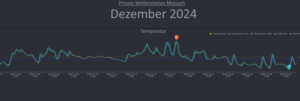 Temperaturverlauf Dezember 2024 (Marcel Helget: Private Wetterstation Maisach)