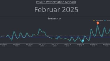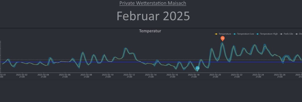 Temperaturverlauf Februar 2025 (Private Wetterstation Maisach)