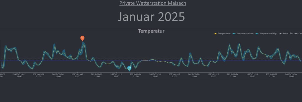 Temperaturverlauf Januar 2025 (Private Wetterstation Maisach)