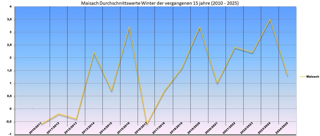 Und die 2. Grafik: Die Durchschnittswerte von den Wintermonaten aus Maisach aus den vergangenen 15 Jahren(2010-2015).